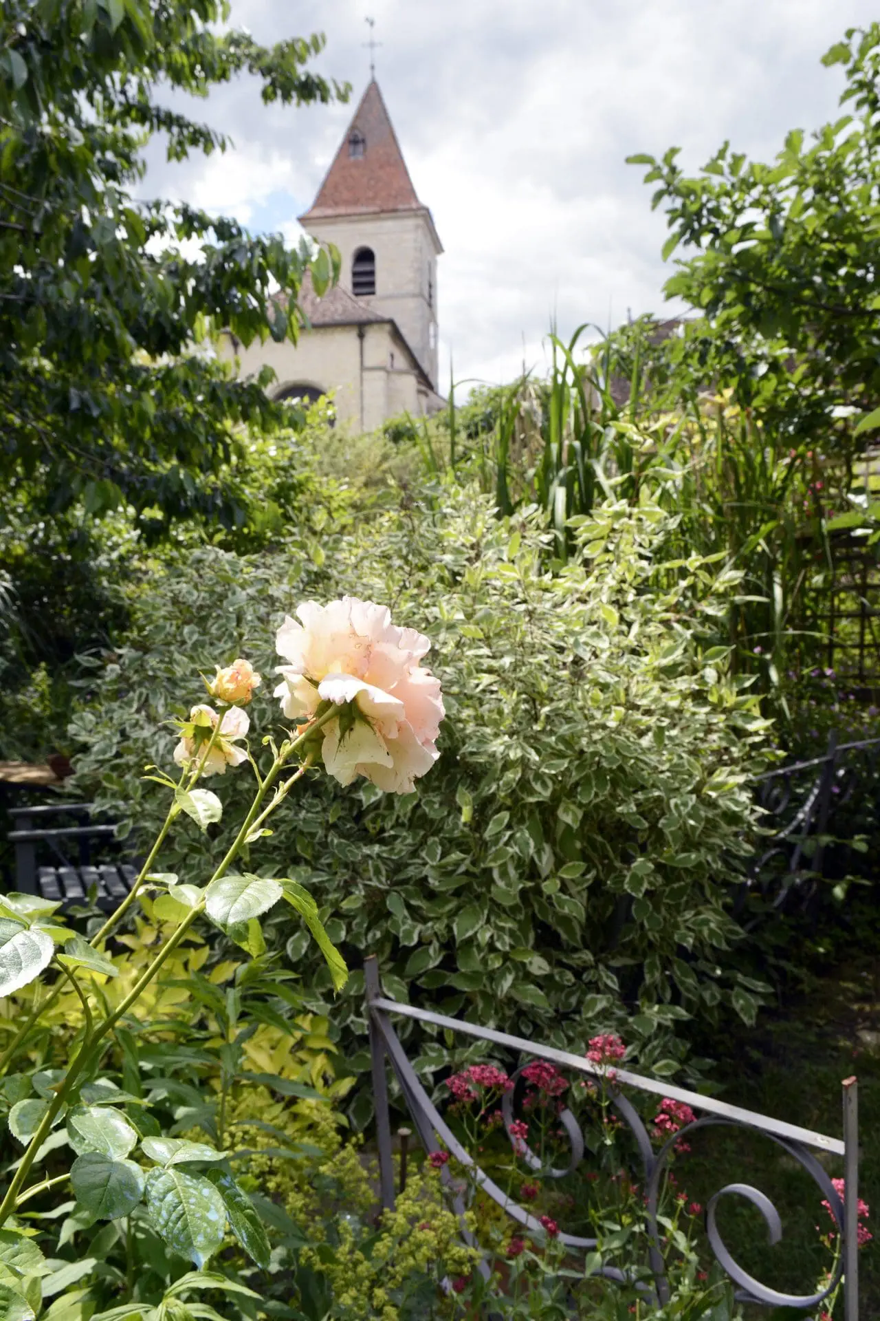 Flânez dans ce petit jardin clos « de curé », de roses et de vivaces, niché au pied de l’église de Mirebeau-sur-Bèze.